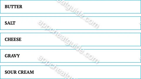 Look at the table for the Family Feud Answer with Points Name something people add to potatoes to make them taste better.