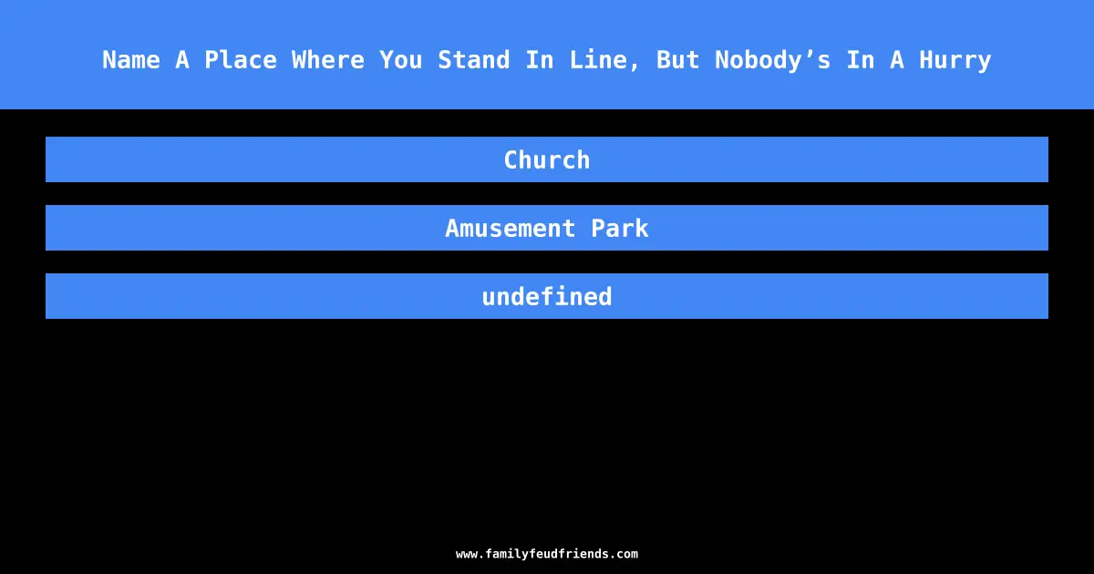 - Name A Place Where You Stand In Line, But Nobody’s In A Hurry