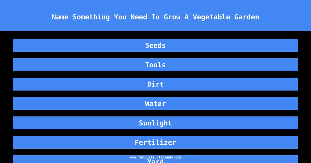 - Name Something You Need To Grow A Vegetable Garden