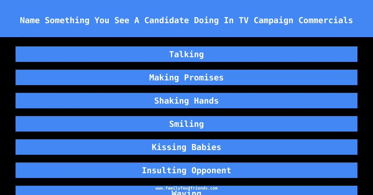 - Name Something You See A Candidate Doing In TV Campaign Commercials