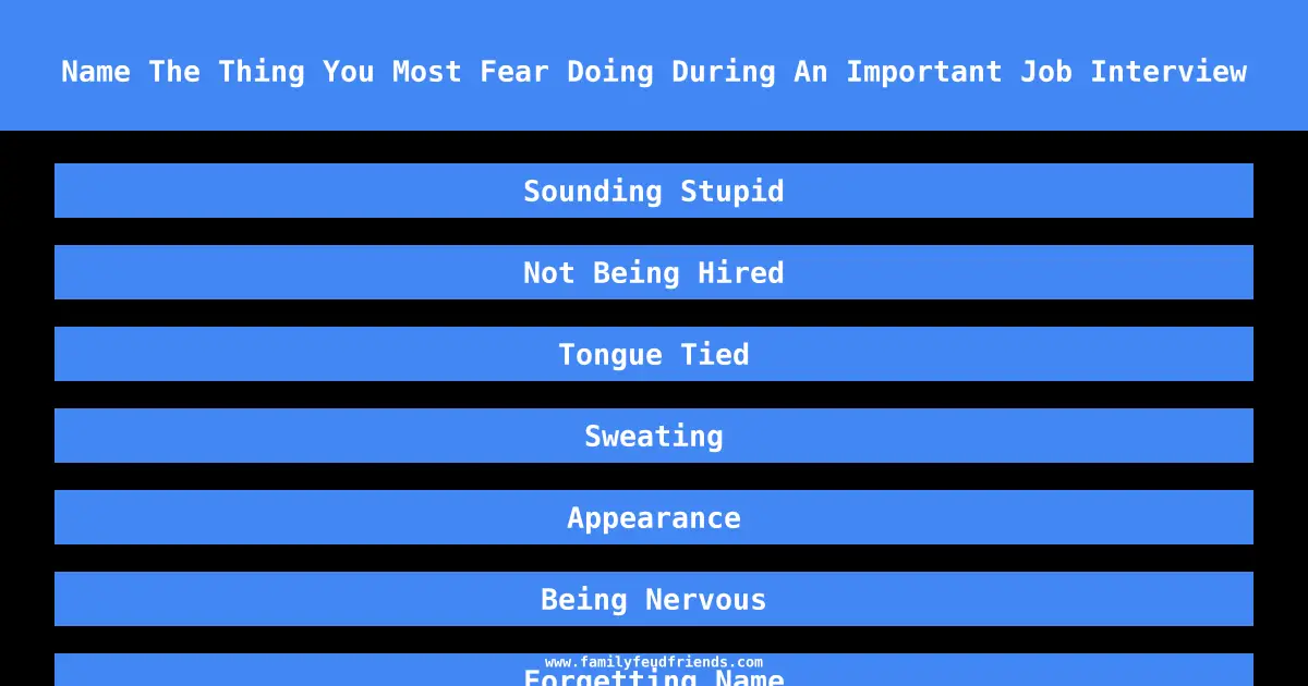 - Name The Thing You Most Fear Doing During An Important Job Interview