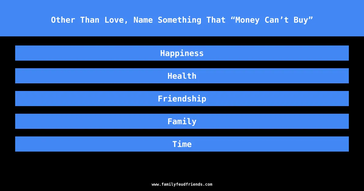 - Other Than Love, Name Something That “Money Can’t Buy”