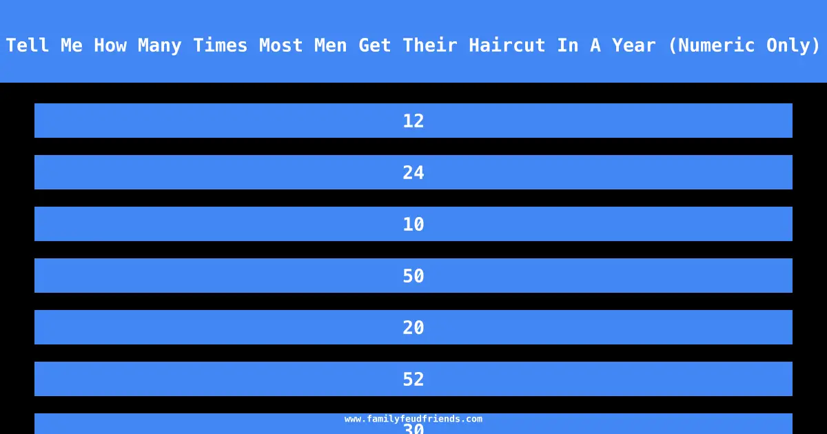 - Tell Me How Many Times Most Men Get Their Haircut In A Year (Numeric Only)