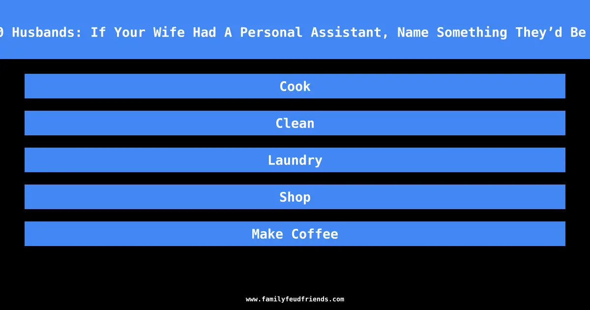 - We Asked 100 Husbands: If Your Wife Had A Personal Assistant, Name Something They’d Be Asked To Do